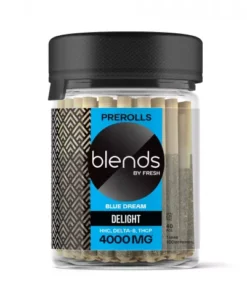 Now available in Delight, the new Blue Dream blend from Blends by Fresh. This pre-roll includes a sweet blend of your favorite compounds such as HHC, Delta 8, and more. These Pre-Roll offer 4000mg of pure relaxation and peacefulness you can’t find anywhere else.