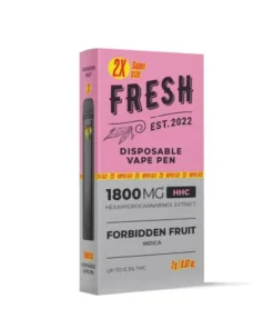 Try the only vape that refreshes with 1800mg of Forbidden Fruit strain infused into HHC Disposable Vape Pens from Fresh. With Vape Pens from Fresh, you’ll have a whole new lease on life, one that freshens up your body and spirit. Cleanse your endocannabinoid system and take yourself to a higher place with these sweet vapes. It doesn’t get any better than this.
