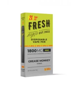 Try the only vape that refreshes with 1800mg of Grease Monkey strain infused into HHC Disposable Vape Pens from Fresh. With Vape Pens from Fresh, you’ll have a whole new lease on life, one that freshens up your body and spirit. Cleanse your endocannabinoid system and take yourself to a higher place with these sweet vapes. It doesn’t get any better than this.