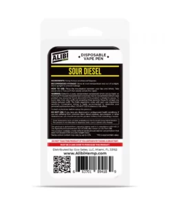 Experience 920mg of hemp-extracted Delta-8 THC in Sour Diesel and embrace the carefree, soothing pleasure of this exciting new cannabinoid while dipping into the old school Sour Diesel scene. Alibi Delta-8 Disposable Vape Pens, now in Sour Diesel, will give you a full-body buzz. With Sour Diesel, you’ll feel the buzz of a flavor that’s an herbal and pineapple scent for the perfect buzz.